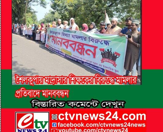 শৈলকুপায় মাদ্রাসার শিক্ষকের বিরুদ্ধে মামলার প্রতিবাদে মানববন্ধন