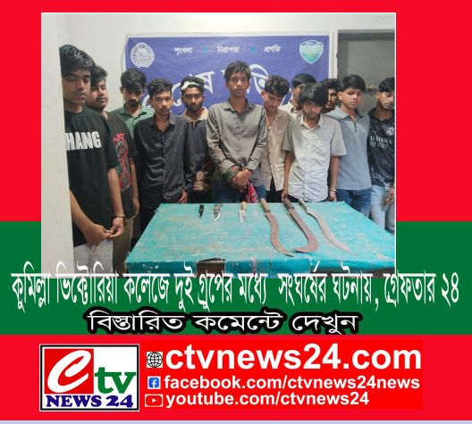কুমিল্লা ভিক্টোরিয়া কলেজে দুই গ্রুপের মধ্যে সংঘর্ষের ঘটনায়, গ্রেফতার ২৪