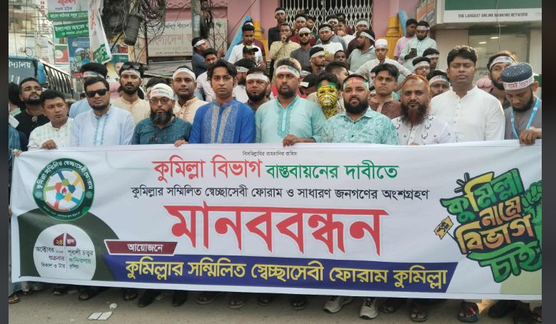 কুমিল্লা বিভাগ বাস্তবায়নের দাবিতে সম্মিলিত স্বেচ্ছাসেবী ফোরামের মানববন্ধন ও সমাবেশ