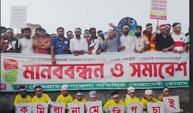 কুমিল্লা নামে বিভাগ বাস্তবায়নের দাবিতে চৌদ্দগ্রামে স্বেচ্ছাসেবী ফোরামের র্যালি ও সমাবেশ