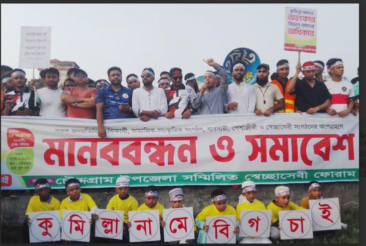 কুমিল্লা নামে বিভাগ বাস্তবায়নের দাবিতে চৌদ্দগ্রামে স্বেচ্ছাসেবী ফোরামের র্যালি ও সমাবেশ