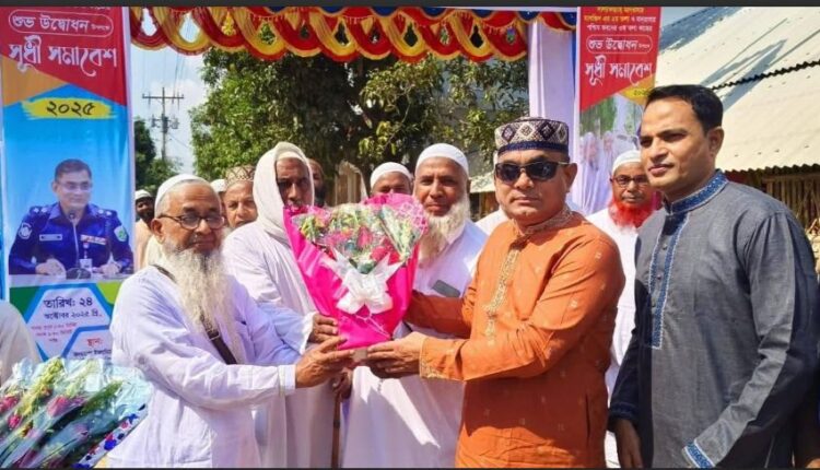 সাপাহার ইসলামিয়া মাদ্রাসায় সুধী সমাবেশে এসপি শাফিউল সরোয়ারকে ফুল দিয়ে বরণ