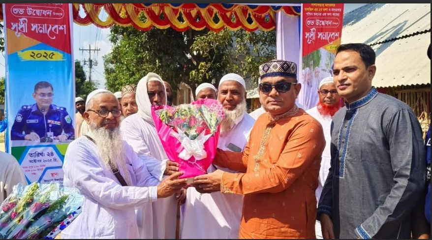সাপাহার ইসলামিয়া মাদ্রাসায় সুধী সমাবেশে এসপি শাফিউল সরোয়ারকে ফুল দিয়ে বরণ