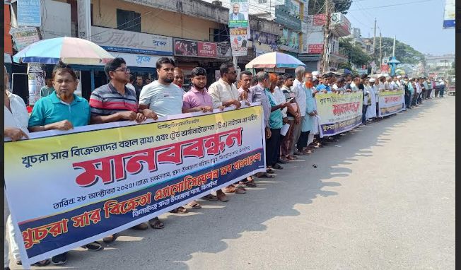 ঝিনাইদহে খুচরা সার বিক্রেতাদের মানববন্ধন ও স্মারকলিপি পেশ