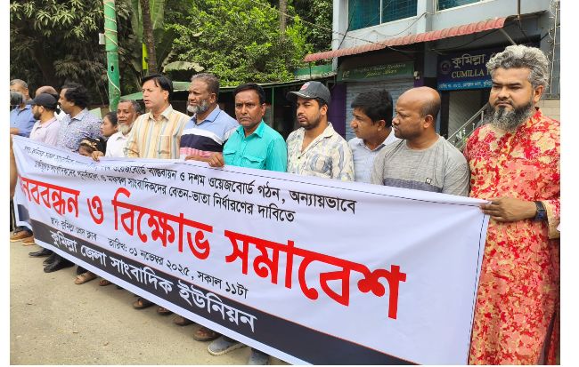 সমাবেশে সাংবাদিক নেতারা বলেন, দেশে নবম ওয়েজ বোর্ড ঘোষণা হলেও অধিকাংশ গণমাধ্যম মালিক তা বাস্তবায়ন করছে না।মাঠে মাঠে আমরা ঝুঁকি নিই, গুলি-লাঠির সামনে দাঁড়াই, কিন্তু মাস শেষে ন্যায্য বেতন পাই না। ওয়েজ বোর্ড বাস্তবায়ন হলে সাংবাদিকদের পেশাগত মর্যাদা ও জীবনমান উন্নত হবে।এ ছাড়া দ্রুত দশম ওয়েজ বোর্ড গঠনের দাবি উঠে সমাবেশে। বক্তাদের মতে, ডিজিটাল যুগে সংবাদপেশা আরও ঝুঁকিপূর্ণ হচ্ছে, কিন্তু সমানতালে বাড়ছে না সুবিধা-সংরক্ষণ।