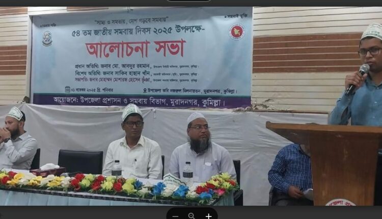 কুমিল্লার মুরাদনগরে ৫৪তম জাতীয় সমবায় দিবসের আলোচনা সভায় প্রধান অতিথি উপজেলা নির্বাহী কর্মকর্তা মো. আব্দুর রহমান,
