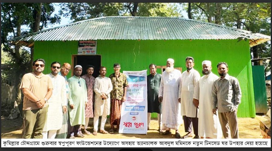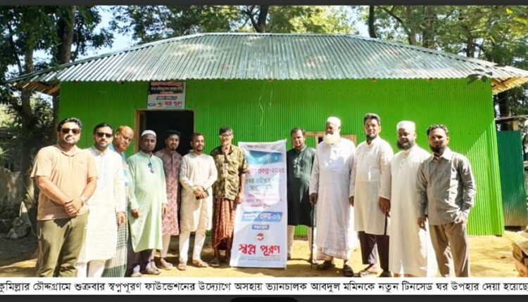 চৌদ্দগ্রামে অসহায় ভ্যানচালককে স্বপ্নপূরণ ফাউন্ডেশনের নতুন ঘর উপহার,
