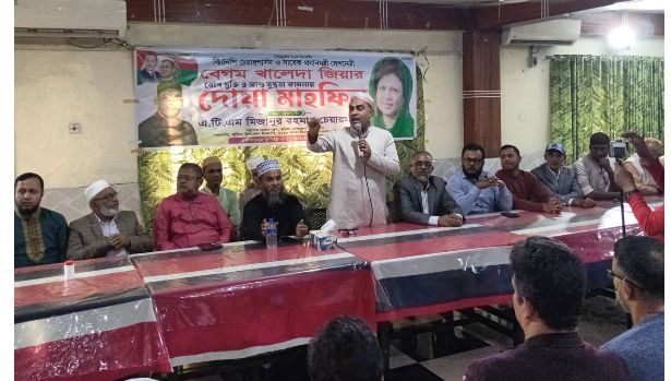 শনিবার ২৯ নভেম্বর বিকেলে কুমিল্লা দক্ষিণ জেলা বিএনপির সদস্য বুড়িচং উপজেলা বিএনপির সভাপতি ও সাবেক উপজেলা চেয়ারম্যান হাজী এটিএম মিজানুর রহমানের আয়োজনে দেশনেত্রী বিএনপির চেয়ার পার্সন ও সাবেক প্রধানমন্ত্রী বেগম খালেদা জিয়ার রোগমুক্তি ও আশু সুস্থতা কামনায় মিয়ামী ২ হোটেলের হল রুমে দোয়া মিলাদ মাহফিল অনুষ্ঠিত হয়েছে।