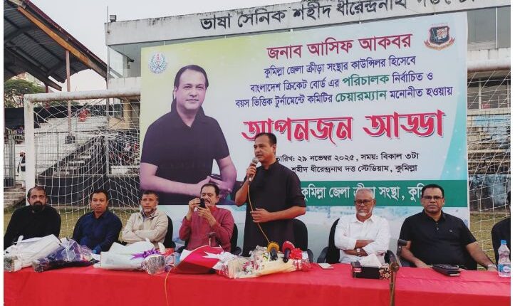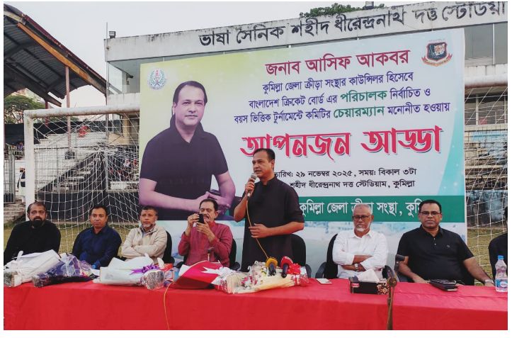 এসময় আরও বক্তব্য রাখেন কুমিল্লা জেলা ক্রীড়া সংস্থার এডহক কমিটির সদস্য বদরুল হুদা জেনু,কাজী গোলাম কিবরিয়া, খালেদ সাইফুল্লাহ, আফিস তরুনাভ, মাহির তাজওয়ার ওহী, সাবেক জাতীয় ক্রিকেট কোচ এমদাদুল হক ইমদু, সাবেক ক্রিকেটার ফখরুল আলম উল্লাস, ক্লাব অফিশিয়াল আল আমিন ভুইয়া, জেলা আম্পায়ার এসোসিয়েশনের সাবেক প্রেসিডেন্ট খায়রুল আলম সোহাগ, কুমিল্লা জেলা ক্রিকেট কোচ ও বিসিবির গেম ডেভেলপমেন্ট সদস্য হাবীব মোবাল্লেগ জেমস। সংবাদ প্রকাশঃ ২৯-১১-২০২৫ ইং সিটিভি নিউজ এর (সংবাদটি গুরুত্বপূর্ণ মনে হলে দয়া করে ফেসবুকে লাইক বা শেয়ার করুন) (If you think the news is important, please share it on Facebook or the like> See More =আরো বিস্তারিত জানতে কমেন্টসে লিংকে ছবিতে ক্লিক করুন= ==আরো =বিস্তারিত জানতে কমেন্টসে নিউজ লিংকে ক্লিক করুন=