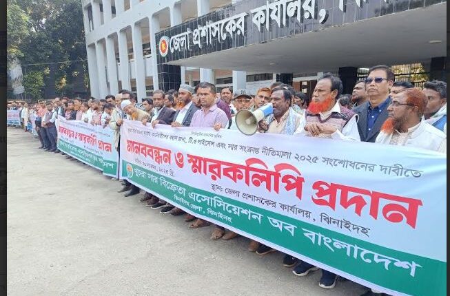 খুচরা সার বিক্রেতা আইডি কার্ডধারীদের বহাল রাখা, টি.ও লাইসেন্স এবং সার সংক্রান্ত নীতিমালা ২০২৫ সংশোধনের দাবীতে ঝিনাইদহে মানববন্ধন ও স্মারকলিপি প্রদান করা হয়েছে।