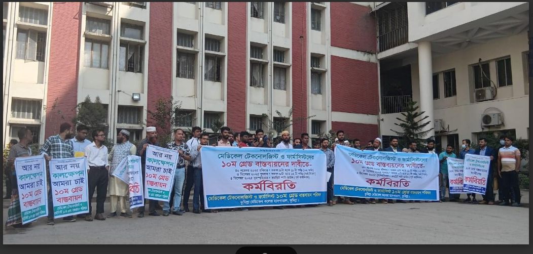 কুমিল্লা মেডিকেল টেকনোলজিস্টদের নেতৃবৃন্দরা বলেন,মেডিকেল টেকনোলজিস্ট ও ফার্মাসিস্টদের দশম গ্রেড বাস্তবায়নের ফাইলটি জনপ্রশসন মন্ত্রণালয়ে প্রক্রিয়াধীন রয়েছে। সরকারের সংশ্লিষ্ট বিভাগ ও মন্ত্রণালয়ে বার বার উপস্থাপিত হয়ে আসছে। কিন্তু দুঃখের বিষয়, নিয়মতান্ত্রিক উপায়ে আন্দোলন, সংগ্রাম, দাপ্তরিক চিঠি চালাচালি, জনপ্রশাসন বিধি শাখার সমস্ত চাহিদা পূরণ করা সত্ত্বে ও সংশ্লিষ্ট ঊর্ধ্বতন কর্তৃপক্ষের সদিচ্ছার অভাব, আমলাতান্ত্রিক জটিলতা ও নানাবিধ উদ্দেশ্যে মন্ত্রণালয় অবিরতভাবে কোয়ারি দেয়ার মাধ্যমে সময়ক্ষেপণ ও জটিলতা তৈরি করছে।ইতোপূর্বে ,ডিপ্লোমা ইঞ্জিনিয়ার, ডিপ্লোমা নার্স ও ডিপ্লোমা কৃষিবিদরা ১১তম গ্রেড থেকে দশম গ্রেডে উন্নীত হয়েছে। আমাদের দাবি না মানা হলে কেন্দ্রীয় কর্মসূচির আলোকে ৩ নভেম্বর অর্ধ-দিবস কর্মবিরতি ও ৪ নভেম্বর পূর্ণ-কর্মদিবস কর্মসূচি পালন করা হবে। সংবাদ প্রকাশঃ ৩০-১১-২০২৫ ইং সিটিভি নিউজ এর (সংবাদটি গুরুত্বপূর্ণ মনে হলে দয়া করে ফেসবুকে লাইক বা শেয়ার করুন) (If you think the news is important, please share it on Facebook or the like> See More =আরো বিস্তারিত জানতে কমেন্টসে লিংকে ছবিতে ক্লিক করুন= ==আরো =বিস্তারিত জানতে কমেন্টসে নিউজ লিংকে ক্লিক করুন=