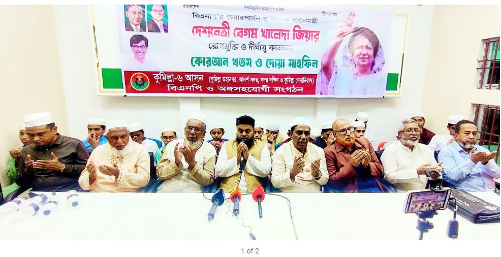 কুমিল্লায় দেশনেত্রী খালেদা জিয়ার সুস্থতা কামনায় হাজী ইয়াছিনের উদ্যোগে ধারাবাহিক কুরআন খতম, খাবার বিতরন ও দোয়া