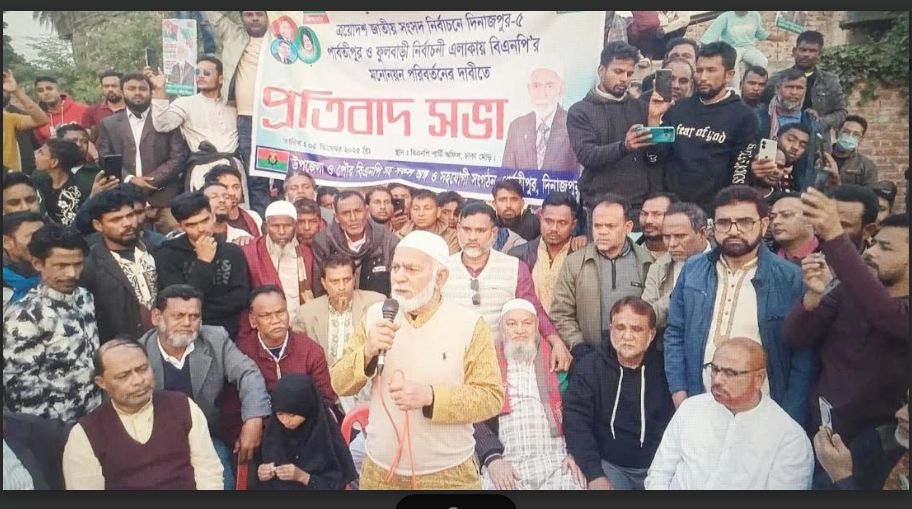 দিনাজপুর-৫ বিএনপি’র মনোনয়ন পরিবর্তনের দাবীতে পার্বতীপুরে প্রতিবাদ সভা