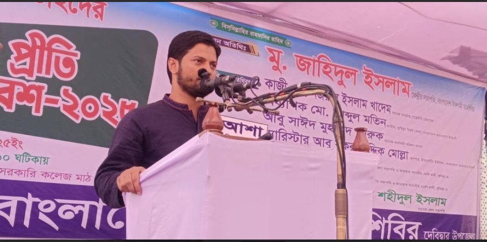 দেবীদ্বার উপজেলা জামায়াতে সেক্রেটারি অধ্যাপক রুহুল আমিন খান ও পৌর আমীর ফেরদৌস আহমেদেও সঞ্চালনায় দেবীদ্বার উপজেলা জামায়াতে আমীর অধ্যাপক শহিদুল ইসলামের সভাপতিত্বে ওই প্রীতি সমাবেশে বিশেষ অতিথি হিসেবে বক্তব্য রাখেন, বাংলাদেশ জামায়াতে ইসলামী (কুমিল্লা ও নোয়াখালী) অঞ্চল টীমের সদস্য কাজী মোঃ নজরুল ইসলাম খাদেম, কুমিল্লা উত্তর জেলা জামায়াতে আমীর অধ্যাপক আবদুল মতিন, গাজীপুর মহানগরীর জামায়াতের সেক্রেটারি আবু সাঈদ মোহাম্মদ ফারুক, জামায়াতের ইউরোপ ইউনিয়নের মূখপাত্র ব্যারিষ্টার আবু বকর সিদ্দিক মোল্লা, কুমিল্লা-৪ (দেবীদ্বার) আসনের মনোনীত প্রার্থী সাইফুল ইসলাম শহিদ, কুমিল্লা-৫ (বুড়িচং-ব্রক্ষ্মণপাড়া) আসনের সংসদ সদস্য মনোনীত প্রার্থী ডঃ মোবারক হোসাইন, কুমিল্লা উত্তর জেলা জামায়াতে সহকারী সেক্রেটারি অধ্যাপক লোকমান হোসেন, অধ্যক্ষ আমিনুল ইসলাম, শিবিরের কেন্দ্রীয় কমিটির ছাত্র কল্যাণ পরিষদের সদস্য আসাদুজ্জামান ভূইয়া, শিবিরের কেন্দ্রীয় কমিটির সাবেক দাওয়া সম্পাদক মোঃ মোজ্জাফর হোসেন, কুমিল্লা উঃ জেলা ছাত্র শিবিরের সভাপতি মোঃ সানাউল্লাহ রাসেল প্রমূখ। ছবির ক্যাপশনঃ দেবীদ্বারে বাংলাদেশ ইসলামী ছাত্র শিবির’ কেন্দ্রীয় সভাপতি মোঃ জাহিদুল ইসলাম বক্তব্য রাখছেন। সংবাদ প্রকাশঃ ০৬-১২-২০২৫ ইং সিটিভি নিউজ এর (সংবাদটি গুরুত্বপূর্ণ মনে হলে দয়া করে ফেসবুকে লাইক বা শেয়ার করুন) (If you think the news is important, please share it on Facebook or the like> See More =আরো বিস্তারিত জানতে কমেন্টসে লিংকে ছবিতে ক্লিক করুন= ==আরো =বিস্তারিত জানতে কমেন্টসে নিউজ লিংকে ক্লিক করুন=
