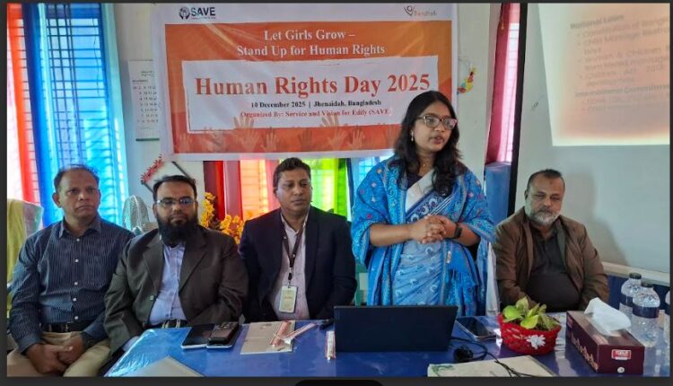 আন্তর্জাতিক মানবাধিকার দিবস উপলক্ষে ঝিনাইদহে বাল্যবিবাহ প্রতিরোধ বিষয়ক সচেতনতামূলক সভা অনুষ্ঠিত হয়েছে।