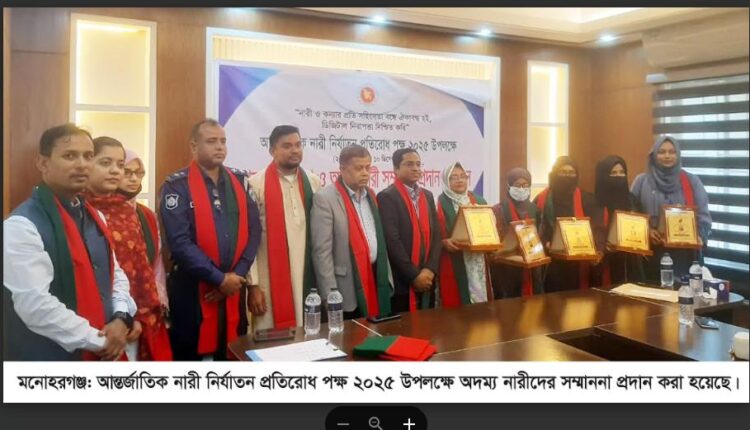 মনোহরগঞ্জে আন্তজার্তিক নারী নির্যাতন প্রতিরোধ পক্ষ ২০২৫ উপলক্ষে অদম্য ৫ নারী কে সম্মাননা প্রদান