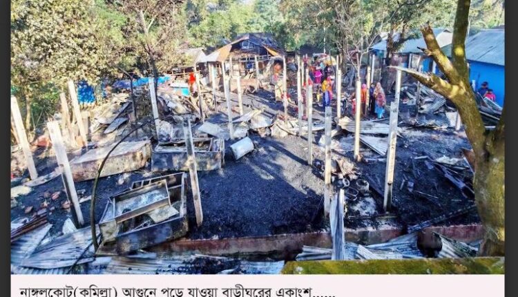 খোলা আকাশের নিচে বসবাস নাঙ্গলকোটে আগুনে পুড়ে গেছে ৯টি পরিবারের বসতঘর