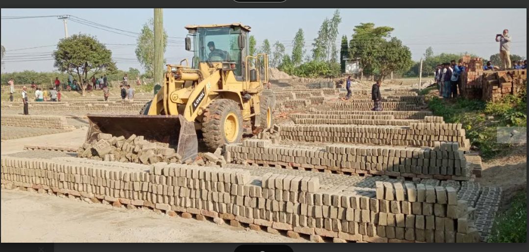পার্বতীপুর অবৈধ ইটভাটা মালিককে ১১ লাখ টাকা জরিমানা, চিমনি ভেঙে ফেলা হয় ৪টি ইটভাটার