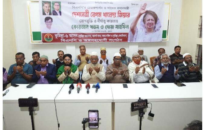 বিএনপি চেয়ারপার্সন ও সাবেক প্রধানমন্ত্রী বেগম খালেদা জিয়ার দ্রুত আরোগ্য ও সুস্বাস্থ্য কামনায় কুমিল্লায় ধারাবাহিকভাবে কুরআন খতম ও বিশেষ দোয়া-মাহফিল অনুষ্ঠিত হচ্ছে।