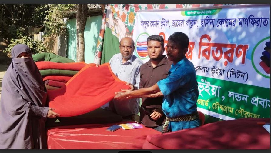 চৌদ্দগ্রামে আব্দুর রহমান ভূঁইয়ার মাগফিরাত কামনায় শীতবস্ত্র বিতরণ