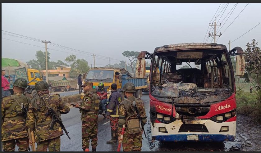 বুড়িচংয়ে বাস চাপায় পথচারী নিহত, এঘটনায় বাসে আগুন দেয় ক্ষুব্ধ জনতা