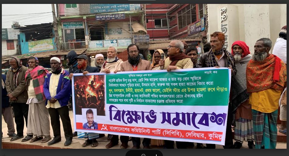 রোববার (২৮ ডিসেম্বর) দুপুরে কুমিল্লার দেবীদ্বারে উপজেলা সিপিবির আয়োজনে ‘খুন, সন্ত্রাস, উদীচী, ছায়ানট, প্রথম আলো ও ডেইলি স্টার-এর ওপর হামলা, অগ্নিসংযোগ ও লুটপাটের’ প্রতিবাদে আয়োজিত বিক্ষোভ মিছিল শেষে মানববন্ধন ও প্রতিবাদ সমাবেশে প্রধান অতিথির বক্তব্যে তিনি এসব কথা বলেন।