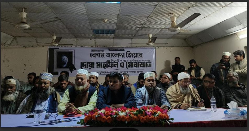 শুক্রবার (২ জানুয়ারি) সকালে কুমিল্লার দেবীদ্বার পৌরসভার মিলনায়তনে দেবীদ্বার উপজেলা জামায়াতে ইসলাম কৃর্তক আয়োজিত বেগম খালেদা জিয়ার মৃত্যুতে দোয়া ও মোনাজাত অনুষ্ঠানে এসব কথা বলেন তিনি। দোয়া ও মোনাজাত অনুষ্ঠানে প্রধান অতিথির বক্তব্য দেন কুমিল্লা উত্তর জেলা জামায়াতে ইসলামের সেক্রেটারি মো. সাইফুল ইসলাম শহীদ। তিনি এ আসনে জামায়াত মনোনীত প্রার্থী ছিলেন।