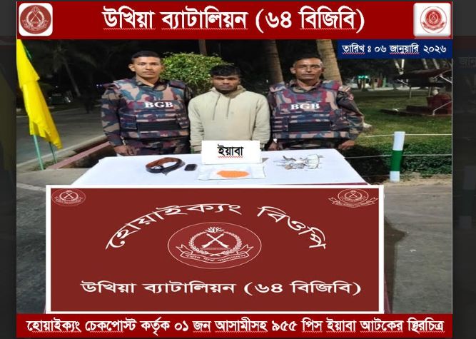 উখিয়ায় বিজিবির চেকপোস্টে ৯৫৫ পিস ইয়াবাসহ যুবক আটক