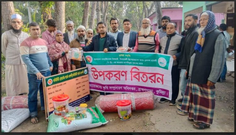 ব্রাহ্মণপাড়ায় কৃষক কৃষাণীর মাঝে কৃষি উপকরণ বিতরণ