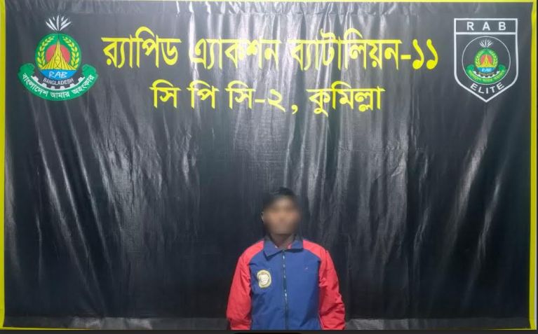 গত ০৬ জানুয়ারি ২০২৬ ইং তারিখ রাতে র্যাব-১১, সিপিসি-২ এর একটি বিশেষ আভিযানিক দল গোপন সংবাদের ভিত্তিতে কুমিল্লা জেলার সদর দক্ষিণ মডেল থানাধীন শ্রীবল্লভপুর এলাকায় মাদক বিরোধী অভিযান পরিচালনা করে। উক্ত অভিযানে একাধিক মামলার এজাহারনামীয় পলাতক আসামী ১। মোঃ স্বপন (৪০) নামক ০১ জন মাদক ব্যবসায়ীকে গ্রেফতার করতে সক্ষম হয়। এ সময় আসামীর হেফাজত হতে ৫২০ পিস ইয়াবা ট্যাবলেট, মাদকদ্রব্য ক্রয়-বিক্রয়ের নগদ-২৬,১০০/-টাকা, ০৫ টি মোবাইল এবং ০১ টি স্বর্ণের চেন উদ্ধার করা হয়।