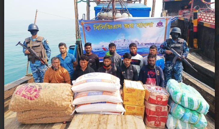 মায়ানমারে পাচারের সময় বিপুল পরিমাণ নিত্যপ্রয়োজনীয় দ্রব্য ও খাদ্যসামগ্রীসহ ১০ জন পাচারকারীকে আটক করেছে বাংলাদেশ কোস্ট গার্ড।