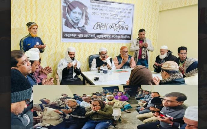 ঝিনাইদহের কালীগঞ্জ পৌরসভার নিশ্চিন্তপুর ৫ নং ওয়ার্ডে সাবেক প্রধানমন্ত্রী ও বিএনপি চেয়ারপারসন বেগম খালেদা জিয়ার রুহের মাগফিরাত কামনায় এক দোয়া মাহফিল অনুষ্ঠিত হয়েছে।
