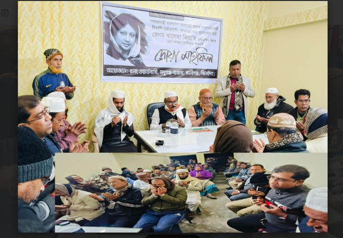মঙ্গলবার (তারিখ উল্লেখযোগ্য) বিকেলে আয়োজিত এই দোয়া মাহফিলে স্থানীয় বিএনপি ও অঙ্গসংগঠনের নেতাকর্মীসহ বিভিন্ন শ্রেণি-পেশার মানুষ অংশগ্রহণ করেন।