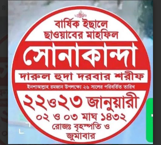 বৃহস্পতিবার সোনাকান্দা দরবার শরীফের মাহফিল শুরু