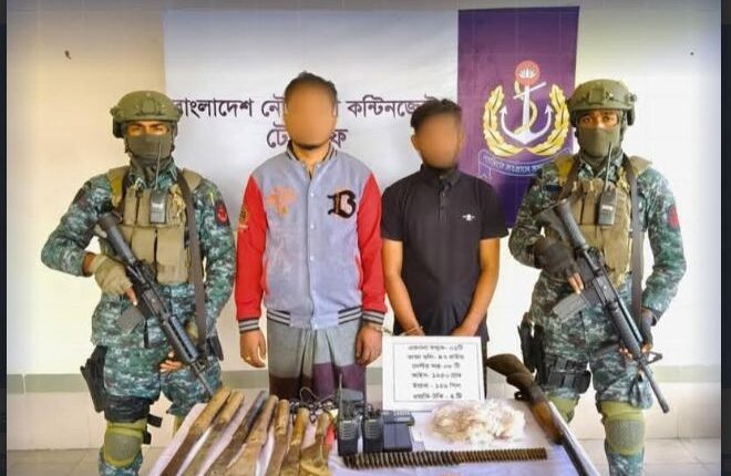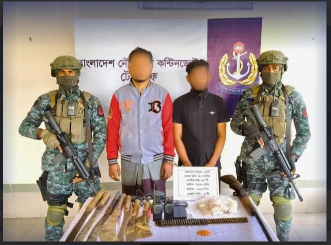 টেকনাফে নৌবাহিনীর অভিযানে ৬ কোটি টাকার মাদক ও অস্ত্র জব্দ, আটক ২