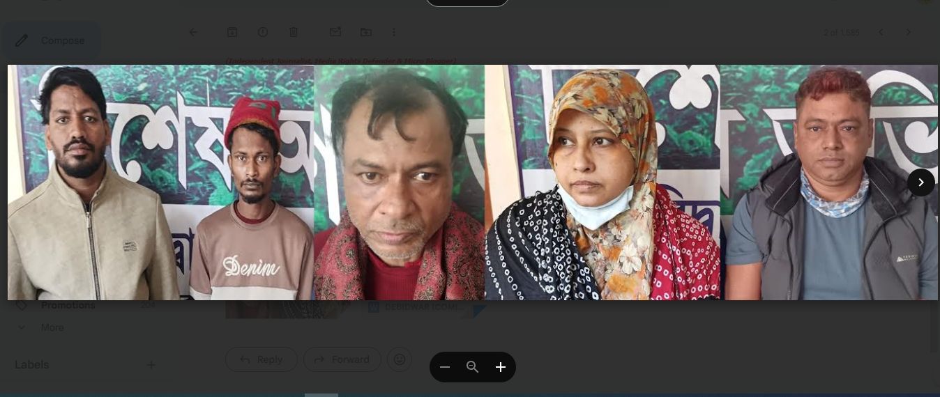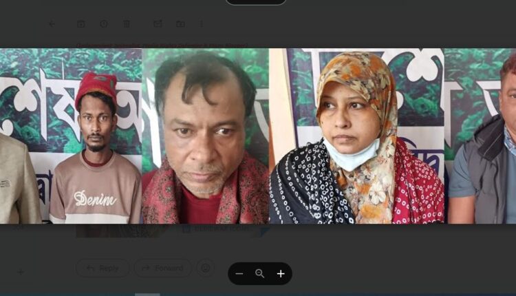 আটককৃতরা হলেন,- দেবীদ্বার পৌর এলাকার ছোট আলমপুর গ্রামের সাহেব আলী মেম্বারের বাড়ির ইসমাইল হোসেনের ছেলে বিল্লাল হোসেন বিল্লু (৩৫) ও তার ছোট ভাই মো. জালাল উদ্দিন পিন্টু (২৮), একই গ্রামের মৃত আব্দুর রাজ্জাক (মনু মেম্বার)’র ছেলে মো. মহসীন মিয়া (৫২), তার স্ত্রী আমেনা আক্তার (৪৫) এবং সুবিল ইউনিয়নের ওয়াহেদপুর গ্রামের হুমায়ুন মিয়ার ছেলে মো. পাভেল মিয়া (২৩)।