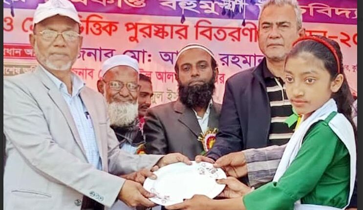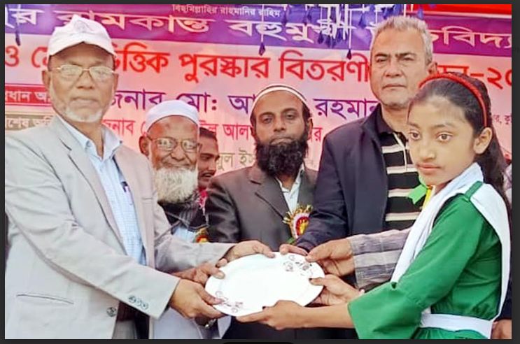 কুমিল্লার মুরাদনগর উপজেলার ঐতিহ্যবাহী রামচন্দ্রপুর রামকান্ত উচ্চ বিদ্যালয়ে বার্ষিক ক্রীড়া ও সাংস্কৃতিক প্রতিযোগিতা শেষে বিজয়ীদের পুরস্কার তুলে দিচ্ছেন, অনুষ্ঠানের প্রধান অতিথি উপজেলা মহিলা বিষয়ক কর্মকর্তা খন্দকার আবদুল আউয়াল।