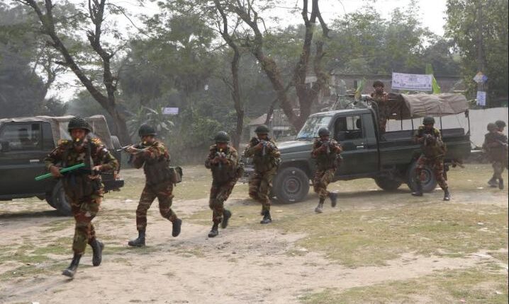 নির্বাচনে আইনশৃঙ্খলা পরিস্থিতি বিঘ্নিত করতে পারে—এমন যেকোনো উদ্ভূত পরিস্থিতি দক্ষতার সঙ্গে মোকাবেলার লক্ষ্যে সেনা সদস্যদের নিয়মিতভাবে প্রশিক্ষণ ও প্রস্তুতিমূলক কার্যক্রম পরিচালনা করা হচ্ছে। এই ধারাবাহিকতার অংশ হিসেবে আজ মনোহরগঞ্জ ক্যাম্পের দায়িত্বপূর্ণ এলাকায় অবস্থিত মান্দারগাঁও উচ্চ বিদ্যালয় মাঠে একটি পরিস্থিতিনির্ভর মহড়া আয়োজন করা হয়।
