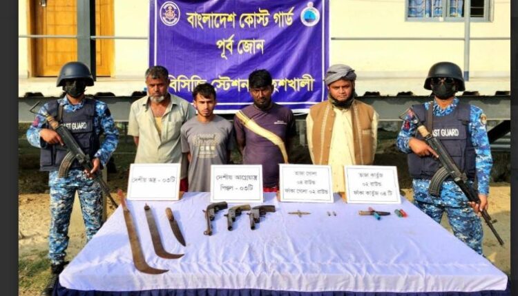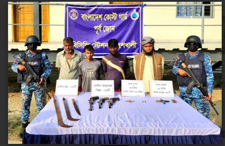 মহেশখালীতে কোস্ট গার্ডের অভিযানে অস্ত্র ও গোলাবারুদসহ ৪ সন্ত্রাসী আটক