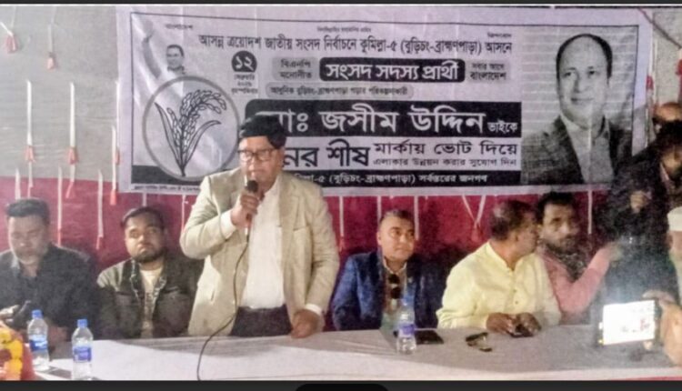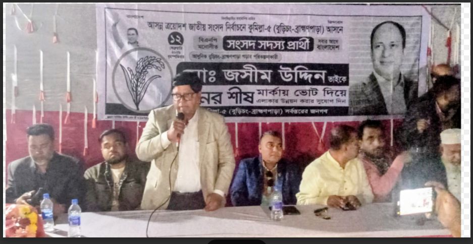 শুক্রবার ৬ ফেব্রুয়ারী কুমিল্লা-৫ ( বুড়িচং -ব্রাহ্মণপাড়া) আসনের বিএনপির মনোনীত ধানের শীষের প্রতীকের এমপি প্রার্থী হাজী মোঃ জসিম উদ্দিনের পক্ষে উপজেলার ষোলনল ইউনিয়নের পূর্বহুড়া হাজী বাড়ী, রামনগর, কোসাইয়াম, নানুয়ার বাজার, সোনাসার, ,বালিখারা,কাহেতারায় সর্বাধিক নারী ভোটেরর উপস্থিতিতে এসোসিয়েশন অব ইঞ্জিনিয়ার্স বাংলাদেশের কুমিল্লা ডিবিশনের জাতীয় নির্বাচনের প্রধান উপদেষ্টা ইঞ্জিনিয়ার মোঃ নজরুল ইসলাম খান বকুলের নেতৃত্বে দিনব্যাপী গণ মিছিল, জন সংযোগ এবং উঠান বৈঠক অনুষ্ঠিত হয়েছে।
