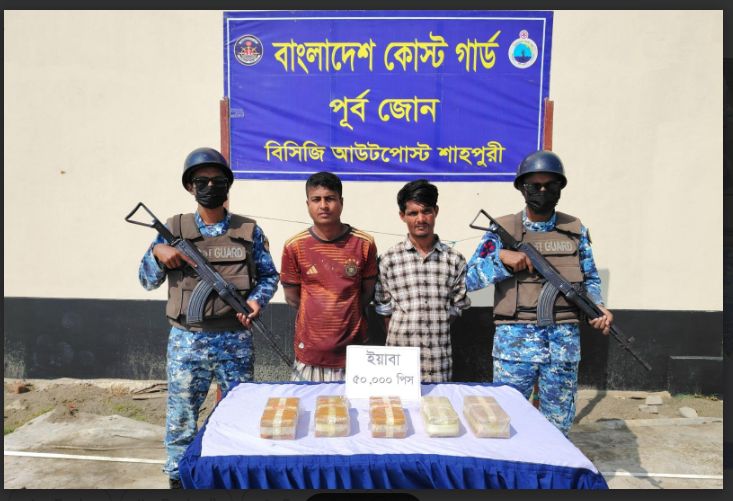 রোববার (১৫ ফেব্রুয়ারি ২০২৬) সকাল ১১টার দিকে কোস্ট গার্ড আউটপোস্ট শাহপরীর সদস্যরা গোপন সংবাদের ভিত্তিতে টেকনাফ থানাধীন নয়াপাড়া সংলগ্ন নাফ নদীতে বিশেষ অভিযান পরিচালনা করেন। অভিযান চলাকালে একটি সন্দেহভাজন কাঠের বোটে তল্লাশি চালিয়ে প্রায় ৫০ হাজার পিস ইয়াবা উদ্ধার করা হয়, যার আনুমানিক বাজারমূল্য প্রায় ২ কোটি ৫০ লাখ টাকা। এ সময় বোটে থাকা দুই মাদক পাচারকারীকে আটক করা হয়।