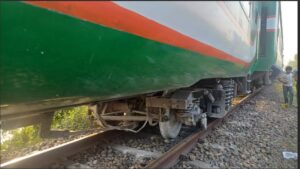 নাঙ্গলকোটে মহানগর এক্সপ্রেস ট্রেনের একটি কোচ লাইনচ্যুত। যাত্রীদের ভোগান্তি
