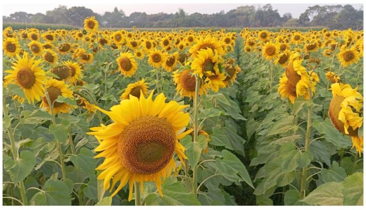 সূর্যমুখী ফুলের বাগান দেখাকে কেন্দ্র করে দর্শনার্থীদের পাদচারণায় মুখরিত হয়ে উঠেছে এলাকা।