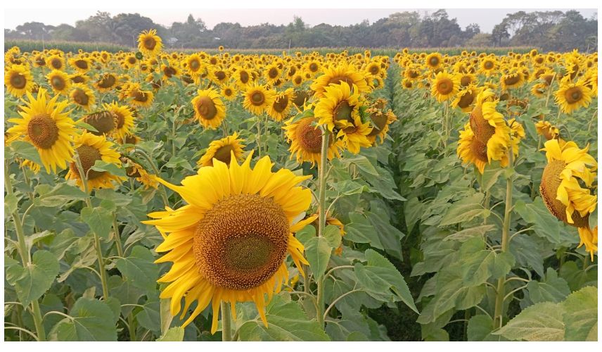 গোমতী নদীর অববাহিকায় দিগন্তজোড়া বিস্তৃত সূর্যমুখী ফুল বাগানটি এক নজর দেখতে প্রতিদিন ভিড় জমাচ্ছেন দর্শনার্থীরা।