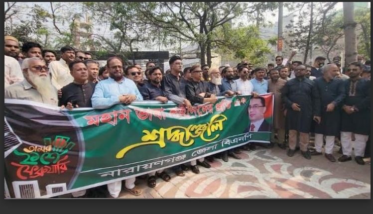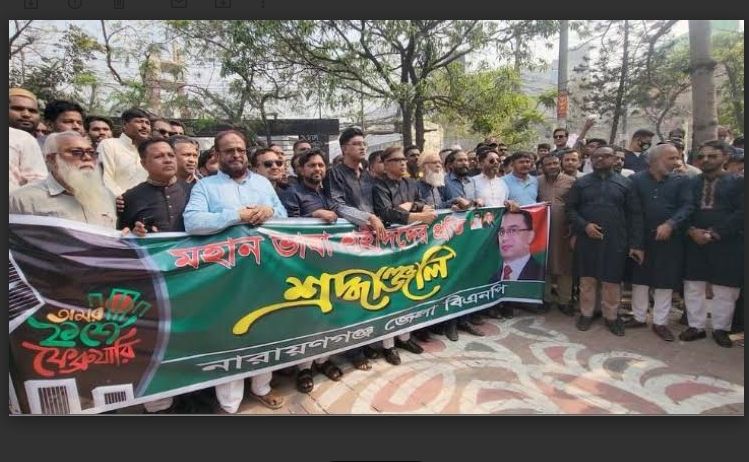 মাতৃভাষা দিবসে নারায়ণগঞ্জ জেলা বিএনপির পুষ্পস্তবক অর্পণ