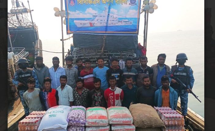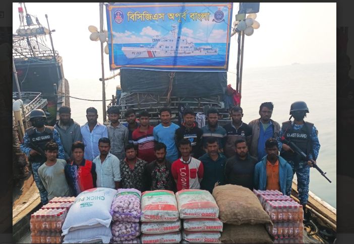 সেন্টমার্টিন উপকূলে কোস্ট গার্ডের অভিযান, সিমেন্ট-খাদ্যপণ্যসহ ১৯ পাচারকারী আটক