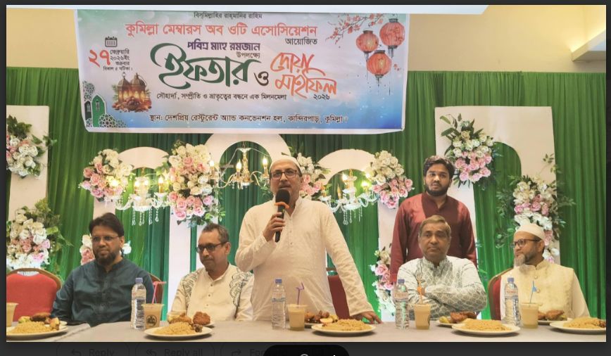 কুমিল্লা মেম্বারস অব ওটি এসোসিয়েশনের উদ্যোগে পবিত্র রমজান উপলক্ষে এক সৌহার্দ্যপূর্ণ আলোচনা সভা ও ইফতার মাহফিল অনুষ্ঠিত হয়েছে।