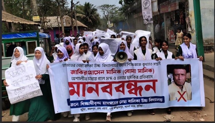 প্রধান শিক্ষককে হত্যার হুমকি: কুমিল্লায় শিক্ষার্থীদের মানববন্ধন ও বিক্ষোভ