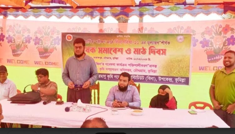 চৌদ্দগ্রামে “প্রায়োগিক পরীক্ষণ মাঠে বিনা সরিষা-১১ এর মূল্যায়ণ” শীর্ষক কৃষক সমাবেশ ও মাঠ দিবস অনুষ্ঠিত