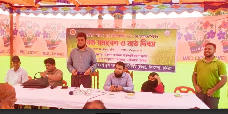 কুমিল্লার চৌদ্দগ্রামে বাংলাদেশ পরমাণু কৃষি গবেষণা ইনস্টিটিউট (বিনা) এর উদ্যোগে চৌদ্দগ্রাম কৃষি সম্প্রসারণ অধিদপ্তরের সহযোগিতায় বিনা’র গবেষণা কার্যক্রম শক্তিশালীকরণ প্রকল্পের অর্থায়ণে বিনা সরিষা-১১ এর মূল্যায়ণ শীর্ষক কৃষক সমাবেশ ও মাঠ দিবস অনুষ্ঠিত হয়েছে।